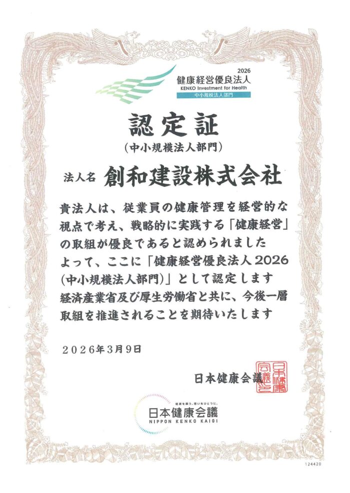 当社は経済産業省と日本健康会議が共同で選出する「健康経営優良法人2026(中小規模法人部門)」に認定されております。